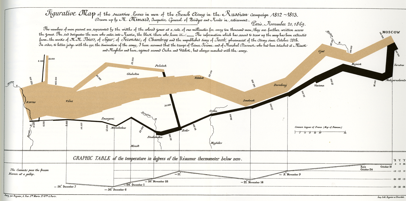 3. Thanks for this post, Dash. I think informational graphics can teach cartoonists and comic book makers a lot about their craft. I worked in newspapers for several years as an informational-graphic designer. Tufte was revered in that world. One of my bosses had that info-graphic of Napoleon’s Russian campaign on the wall as a sort of beacon for standard of quality (but it was hard to apply to creation of location maps for highway traffic or house fires). It’s still probably the best info-graphic ever made. Now I work in new media design, trying to streamline data into an easy, visually-digestible order. I believe it all aids the way I approach comic book page design and communicating ideas through the synthesis of pictures and words, though I probably don’t even realize it.