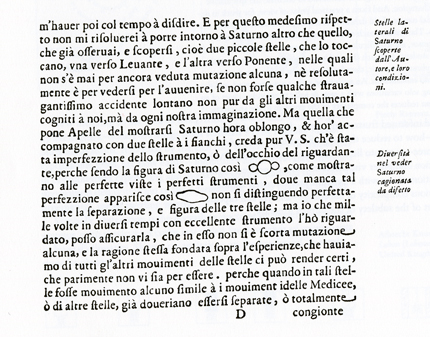 He also talked a lot about older books- like ninth century manuscripts, Durer, Galileo- and how words and images were more integrated before the printing presses divided the systems used to print text and pictures. He compared this to computer programs that divide tasks (like, you go to Word to write and Paint to draw- and compile everything together later if you can figure it out) instead of an ideal program where you could create something and all of the options were integrated. He showed this page by Galileo explaining how the rings of Saturn look: (how he just drew in the middle of the text to explain the rings- “whatever it takes”)