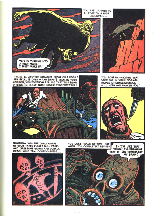 This month has seen the publication of two anthologies of pre-Code horror comics. One was put out by Abrams, a prestigious art-book house of long standing, and the other was published by a small comics publisher named after the result of mashing together the words “Fantasy” “Fantastic” and “Graphics.” Covering similar territory, both books include several of the same stories, but follow very different presentation strategies—and possibly not the strategies you would expect, at least not based on the previous information.